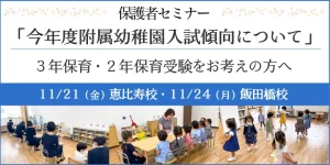 9月13日(金)10時30分より、飯田橋校において年中・年長・小学1年生対象の内部進学コース説明会を開催いたします。※時刻変更になりました 難関校合格から次のステップへ進むための「内部進学コース説明会」にぜひご参加くださ […]